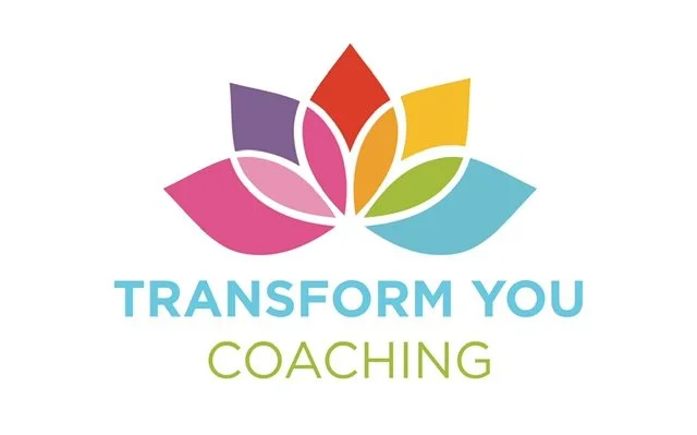 A colorful logo of a stylized flower with petals in purple, red, yellow, green, pink, and blue, with the words "Transform You Coaching" underneath.